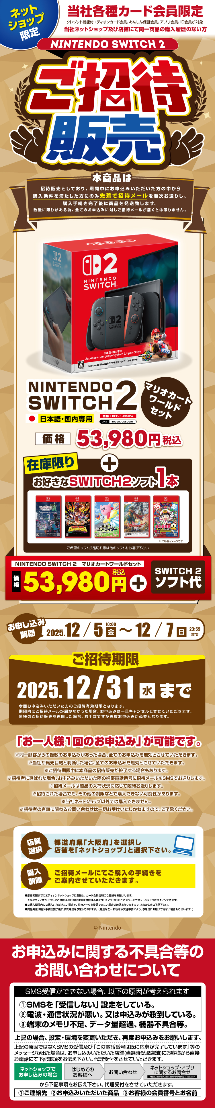 ●ご招待メールが届いた場合でも、その他の制限などで購入できない可能性があります。