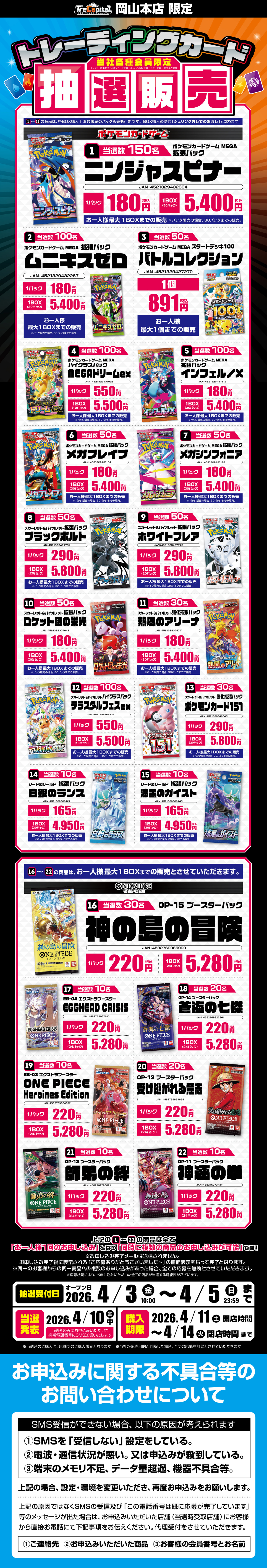 ●ご購入は商品ごとに異なり各上限BOX数又は個数までのご購入となります。※BOX未満の購入も可能です。